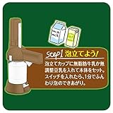 泡立てカップに無脂肪牛乳が無調整豆乳を入れて本体をセット。スイッチを入れたら、1分でふんわり泡ができあがる。