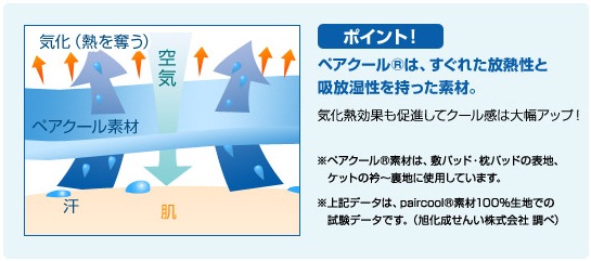 寝るときにクーラーや扇風機などの人工的な風を苦手とする人や 省エネ(ECO)のためにクーラーを高めに設定する方に「ひんやり寝具」はおすすめです。